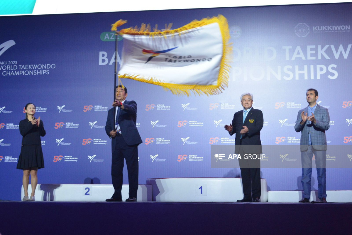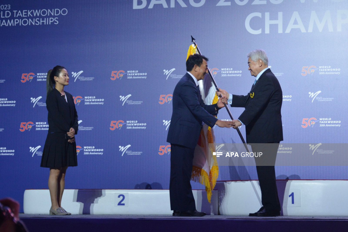 Mundialın yekununda Azərbaycan Taekvondo Federasiyasının vitse-prezidenti Nağı Səfərov dünya çempionatının keçici bayrağını növbəti yarışa ev sahibliyi edəcək Çin Taekvondo Federasiyasının rəsmisinə təqdim edib.
