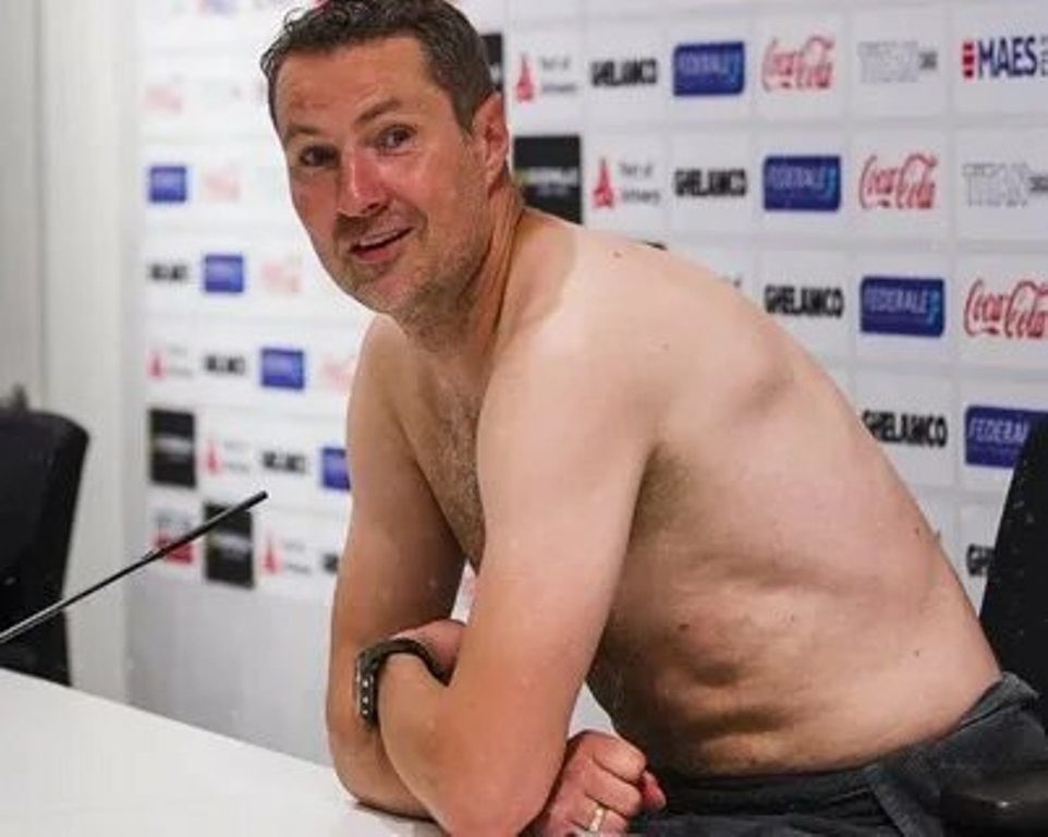 Belçikanın "Antverpen" klubunun baş məşqçisi Brayan Priske Pedersen Avropa Liqasının qrup mərhələsinə düşdükdən sonra jurnalistlərin yanına paltarsız gəlib.