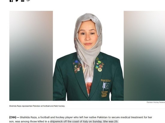 Pakistanlı futbolçu və xokkeyçi 29 yaşlı Şahidə Raza İtaliya sahillərində batan gəmidə ölənlər arasında tapılıb.