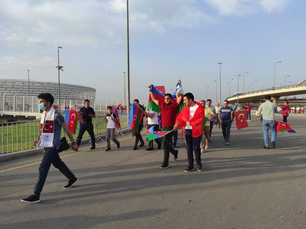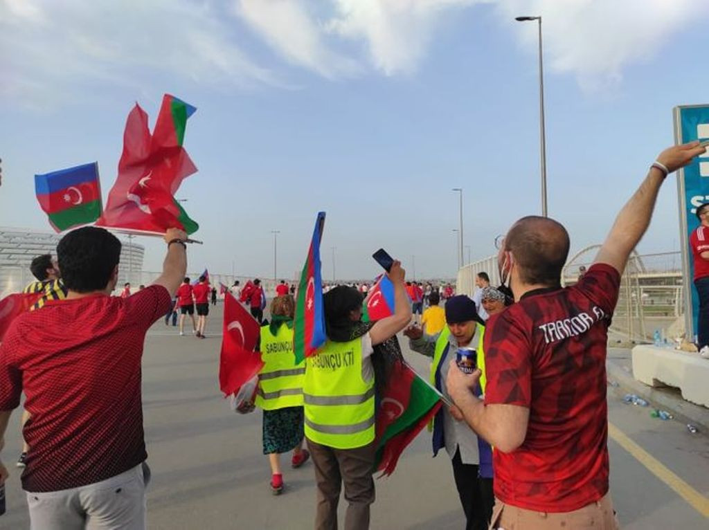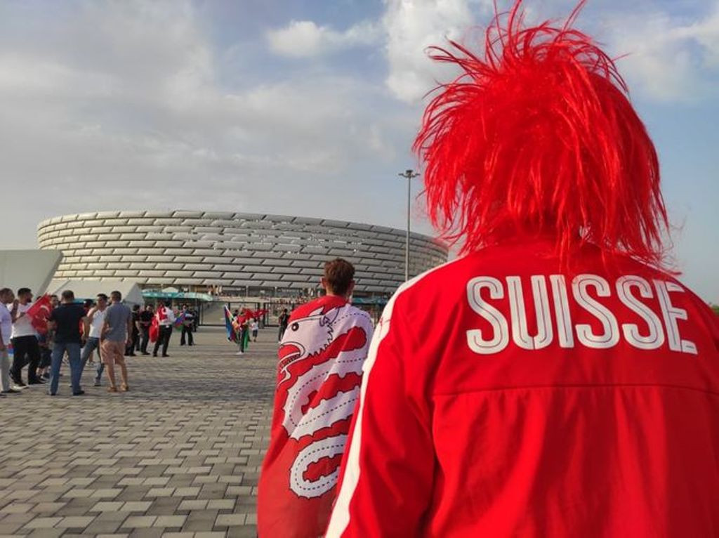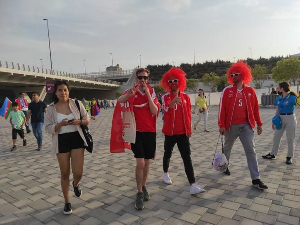 Tədbirdə arenada keçirilən əvvəlki iki matçda olduğu kimi, Bakını əks etdirən və üzərində Avropa çempionatının kuboku olan böyük plakat meydanın mərkəzində açılıb, həmçinin Türkiyə və İsveçrə yığmasının forması dalğalanıb.