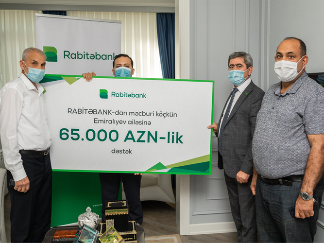 Doğma yurdlarından didərgin düşmüş qaçqın və məcburi köçkünlərə qayğı göstərilməsini daim diqqət mərkəzində saxlayan “Rabitəbank” 29 iyunda Məmmədəmin Rəsulzadə qəsəbəsində məskunlaşmış doqquz nəfər üzvü olan Emiralıyev ailəsini sevindirdi.  İllərdir, ev arzusunda olan Emiraliyevlər ailəsinə mənzil şəraitinin yaxşılaşdırılması məqsədilə “Rabitəbank” tərəfindən ailəyə 65.000 AZN birdəfəlik maliyyə yardımı göstərildi. Zəngilan rayonunun Məmmədbəyli  kəndindən olan böyük ailənin başçısı Emiralıyev Bilal Xanı oğlu “Rabitəbank”a bu təşəbbüsə görə minnətdarlığını bildirmiş, bu addımın nümunəvi mənəvi hərəkət olduğunu vurğulaşmışdır: “Böyükdən kiçiyə qədər, hər bir ailə üzvümüzün adından “Rabitəbank”a sonsuz təşəkkürümüzü bildiririk, bizi unutmadıqları üçün və səxavətliliyə görə çox sağ olun.”