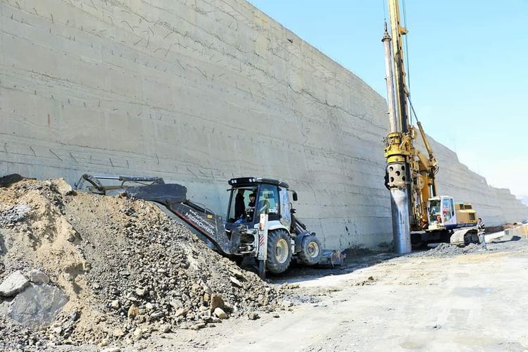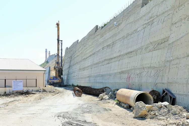 Sözügedən layihəyə uyğun olaraq artıq yamacın aşağı hissəsində svay əsaslı istinad divarının inşası yekunlaşdırılıb. Bunun üçün ərazidə svay vurma işləri aparılıb. Svaylar 1 metr diametrində olmaqla 2 cərgə vurulub və üzərində 1.5 metr qalınlıqda monolit dəmir-beton tava inşa edilib. Tava üzərində 8 metr hündürlükdə istinad divarı tikilib.