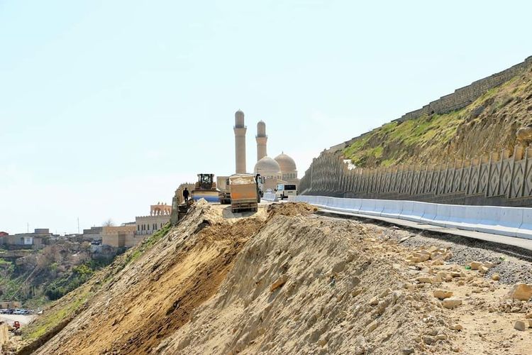 Tikinti-bərpa işlərinin növbəti, sonuncu mərhələsi üzrə hazırda yolun hərəkət hissəsinin tam bərpası istiqamətində addımlar atılır. Bu məqsədlə yamacın doldurulması üçün əraziyə qrunt gətirilərək dolğu işləri görülür.