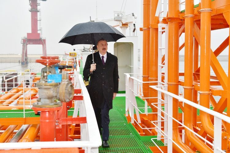 Azərbaycan Respublikasının Prezidenti İlham Əliyev dekabrın 13-də “Azərbaycan Xəzər Dəniz Gəmiçiliyi” Qapalı Səhmdar Cəmiyyətinin sifarişi ilə Bakı gəmiqayırma zavodunda inşa olunan ilk neft tankerinin istismara verilməsi və “Azərbaycan” adlı gəmi-bərənin suya salınması mərasimində iştirak edib.
