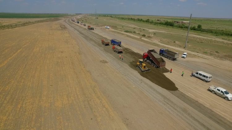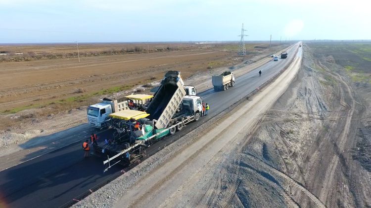 Torpaq işlərinin ardınca yol əsasının inşasına başlanılıb. Yol əsası optimal qırmadaş və qum-çınqıl qarışıqlarıdan istifadə olunmaqla inşa olunur. Buna paralel olaraq yol əsası hazırlanan hissələrin asfaltlanması işlərinə də start verilib. Belə ki, yola ələqələdirici bitum səpilməklə 27 sm qalınlığında 3 laydan ibarət yeni asfalt-beton örtüyü döşənir.