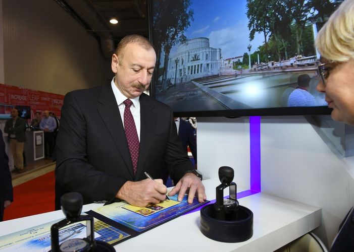 Lent.az AZƏRTAC-a istinadla bildirir ki,  nəqliyyat, rabitə və yüksək texnologiyalar naziri Ramin Quluzadə dövlət başçısına və birinci xanıma sərgi barədə məlumat verib.