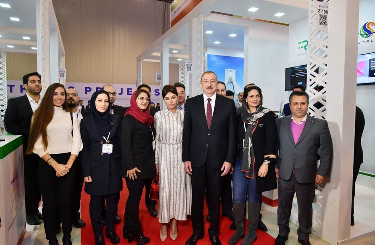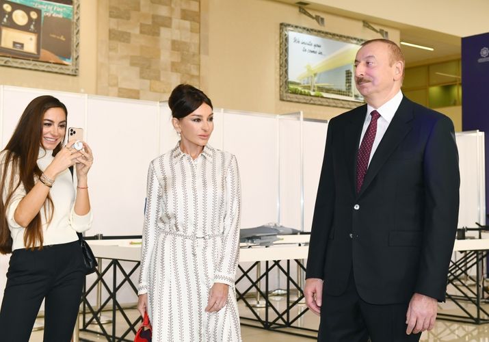 Prezident İlham Əliyev və birinci xanım Mehriban Əliyeva sərgidə nümayiş etdirilən pavilyonlarla tanış olublar.
