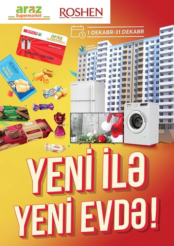 31 dekabr tarixinədək "Araz" supermarketlərindən 10 manat dəyərində istənilən "Roshen" məhsulunu bonus kartla alan hər kəs lotereyada iştirak edib qiymətli hədiyyələr qazana bilər. Ən əsası ikiotaqlı studiya tipli tam təmirli mənzilin sahibi olmaq şansını qazanın.