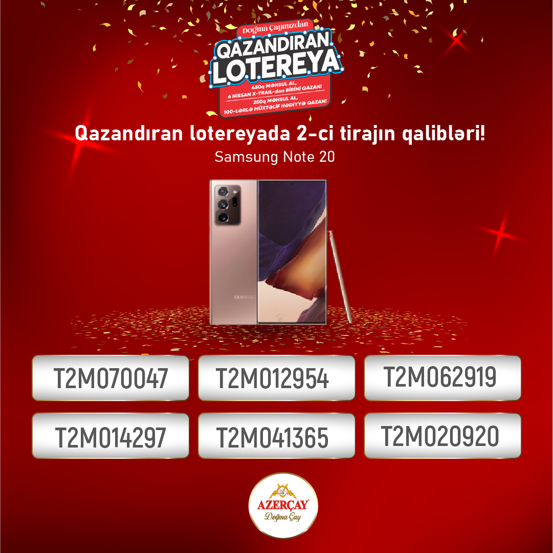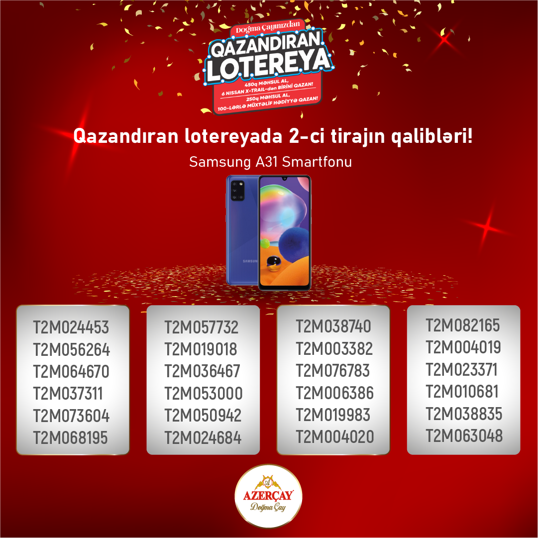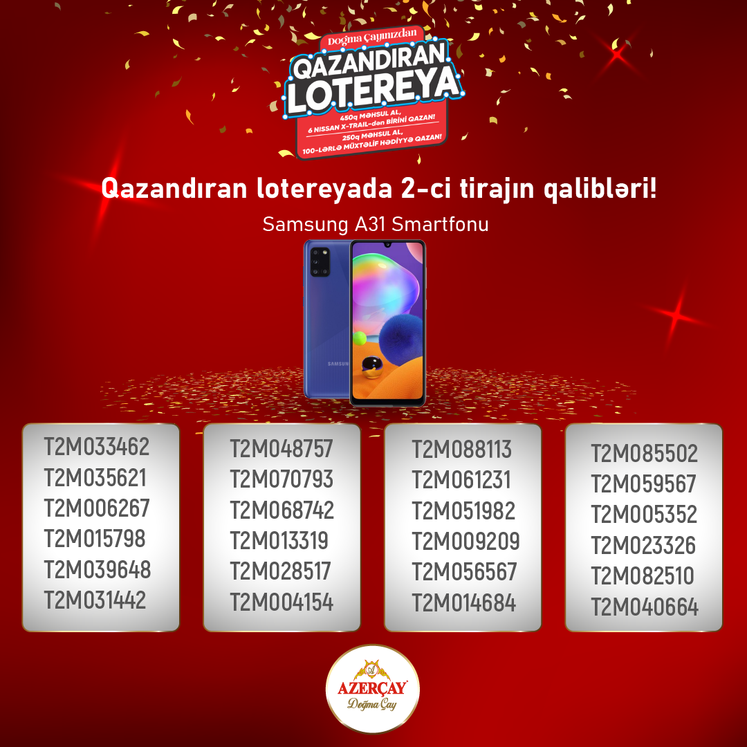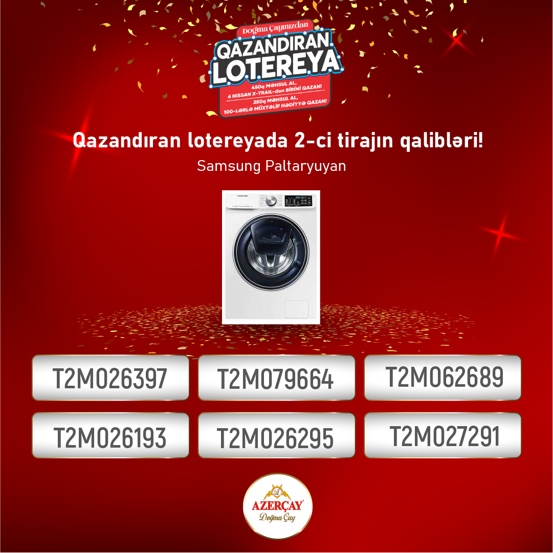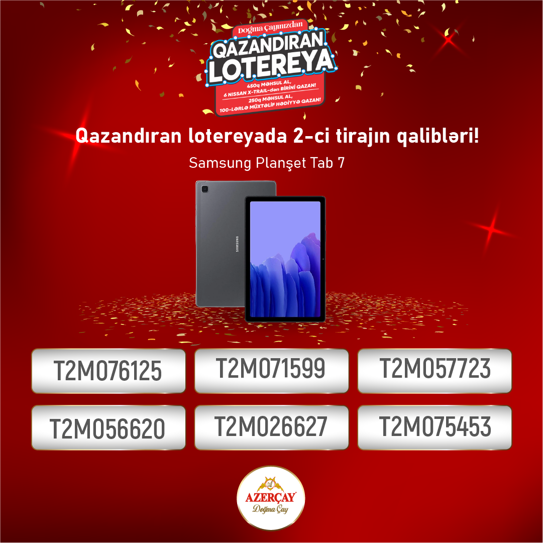 lotereya”nın ikinci tirajı baş tutub. Lotereyada dekabr ayı ərzində “Azerçay” alaraq