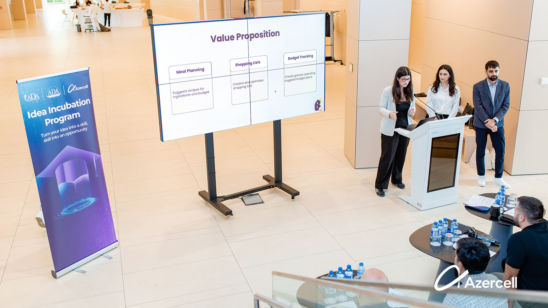 Final mərhələsinə yüksəlmiş 5 komanda layihələrini peşəkar mentor və ekspertlərdən ibarət münsiflər heyəti qarşısında təqdim ediblər. Münsiflər heyətində Azercell-in Rəqəmsal Platformalar və Tədqiqatlar şöbəsinin rəhbəri Şahin Abdurəhimov və Data Analitikası və Süni İntellekt departamentinin aparıcı mütəxəssisi Süleyman Süleymanzadə yer alıblar. Layihələr problemin dəqiq təsviri, təqdim olunan biznes modelinin dayanıqlılığı, hədəf auditoriyaya uyğunluğu və rəqabət üstünlüyü kimi meyarlar əsasında qiymətləndirilib. Yekunda 3 komanda qalib elan olunub.