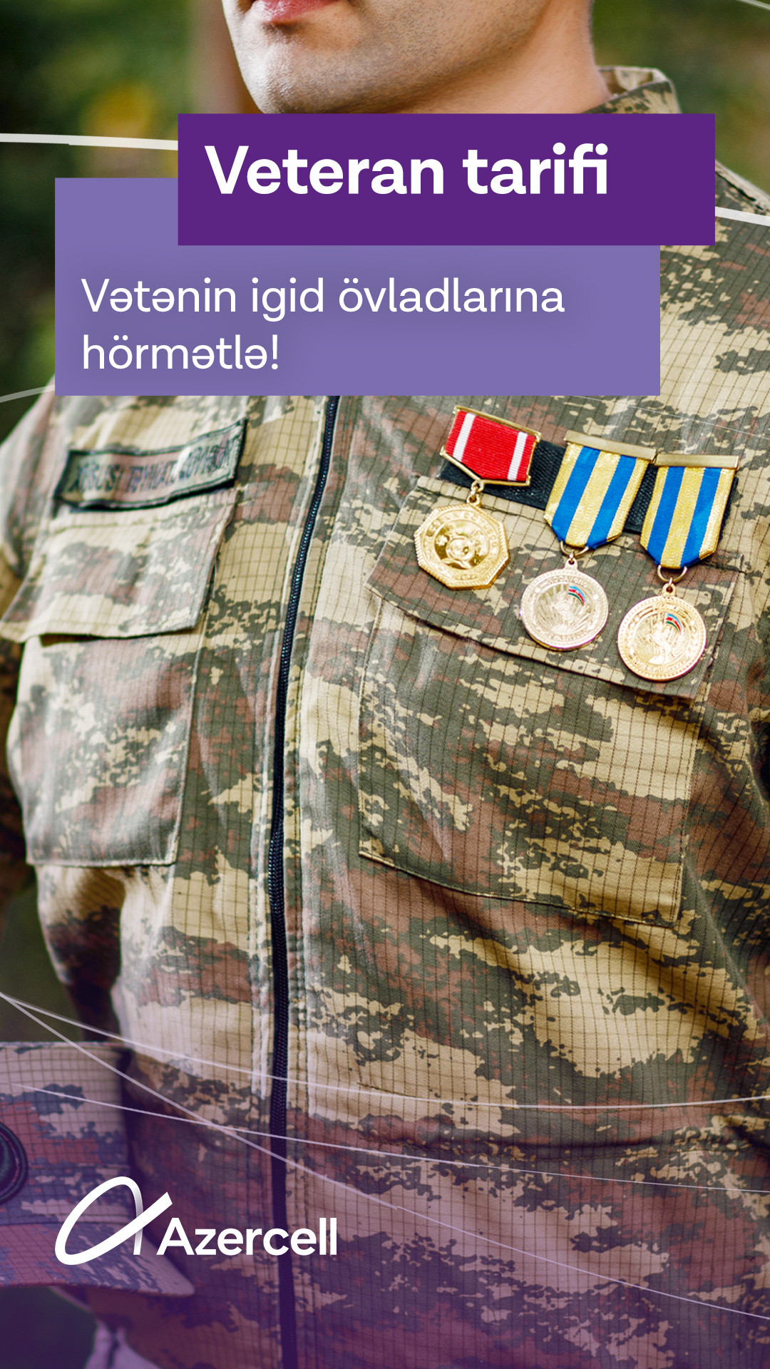 hörmətinin təcəssümü kimi müharibə veteranı statusuna malik olan bütün vətəndaşlarımıza yeni “Veteran tarifi”-ni təqdim edir. Qələbə günümüz münasibətilə