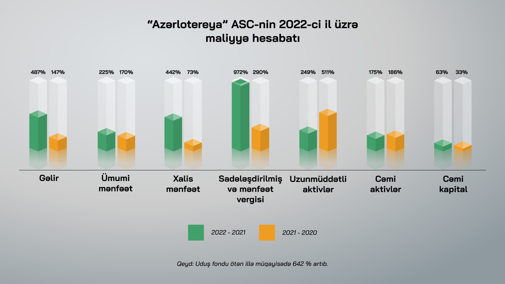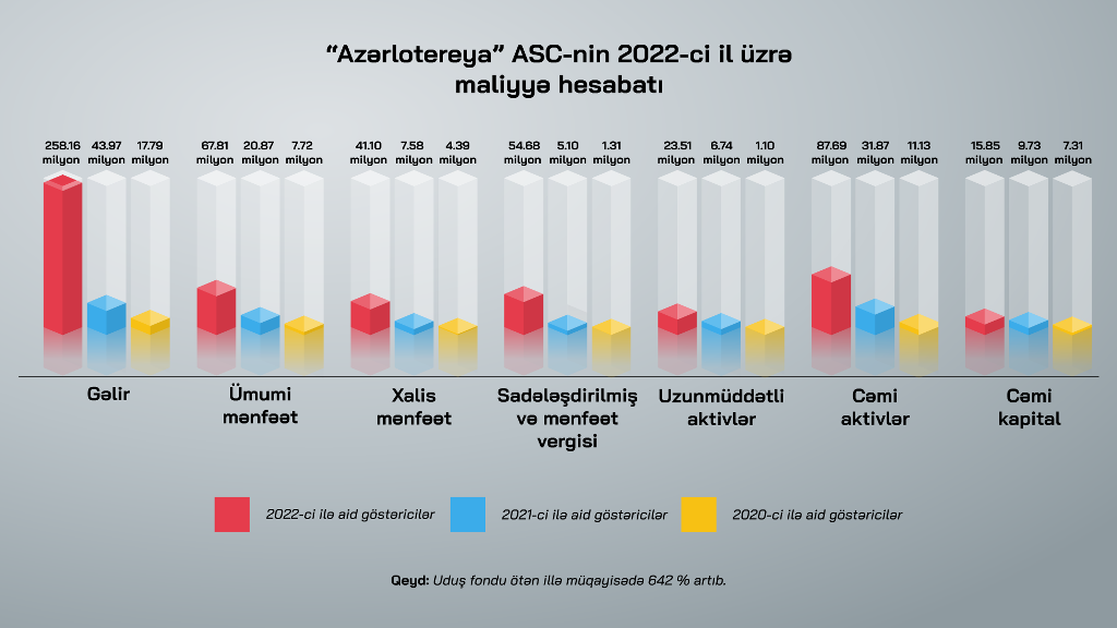 2022-ci ildə “Azərlotereya” ASC-nin satışdan gəlirləri ötən ilə nisbətən 487 faiz artaraq 258,2 milyon manat təşkil edib. Lotereya iştirakçıları üçün ayrılmış uduş fondunda da xeyli artım müşahidə olunub. Bu göstərici 2021-ci illə müqayisədə 642 faiz artıb.