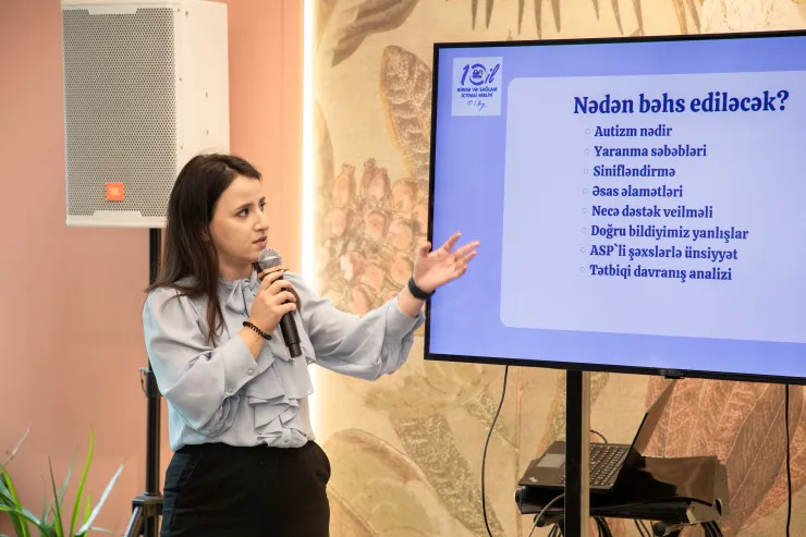 Tədbirin növbəti hissəsində isə klinik psixoloq autizm nədir, onun yaranma səbəbləri, əsas əlamətləri və bu mövzu ilə bağlı cəmiyyətdə geniş yayılmış stereotiplər, yanlış təsəvvürlərlə bağlı məlumat verib.