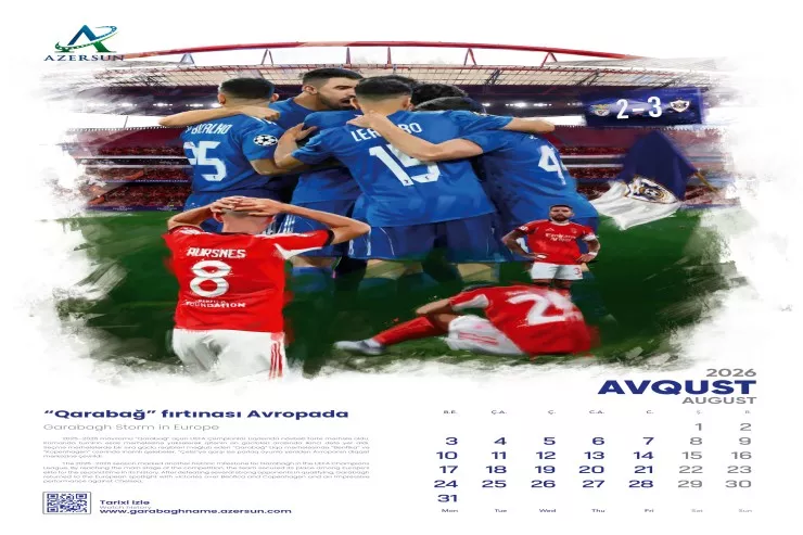 “Azərsun Holdinq” ənənəsinə sadiq qalaraq növbəti illik təqvimini çap etdirib. 2026-cı il üçün hazırlanan bu təqvim son illərdə futbol sahəsində qızıl dövrünü yaşayan “Qarabağ” futbol klubuna həsr olunub.