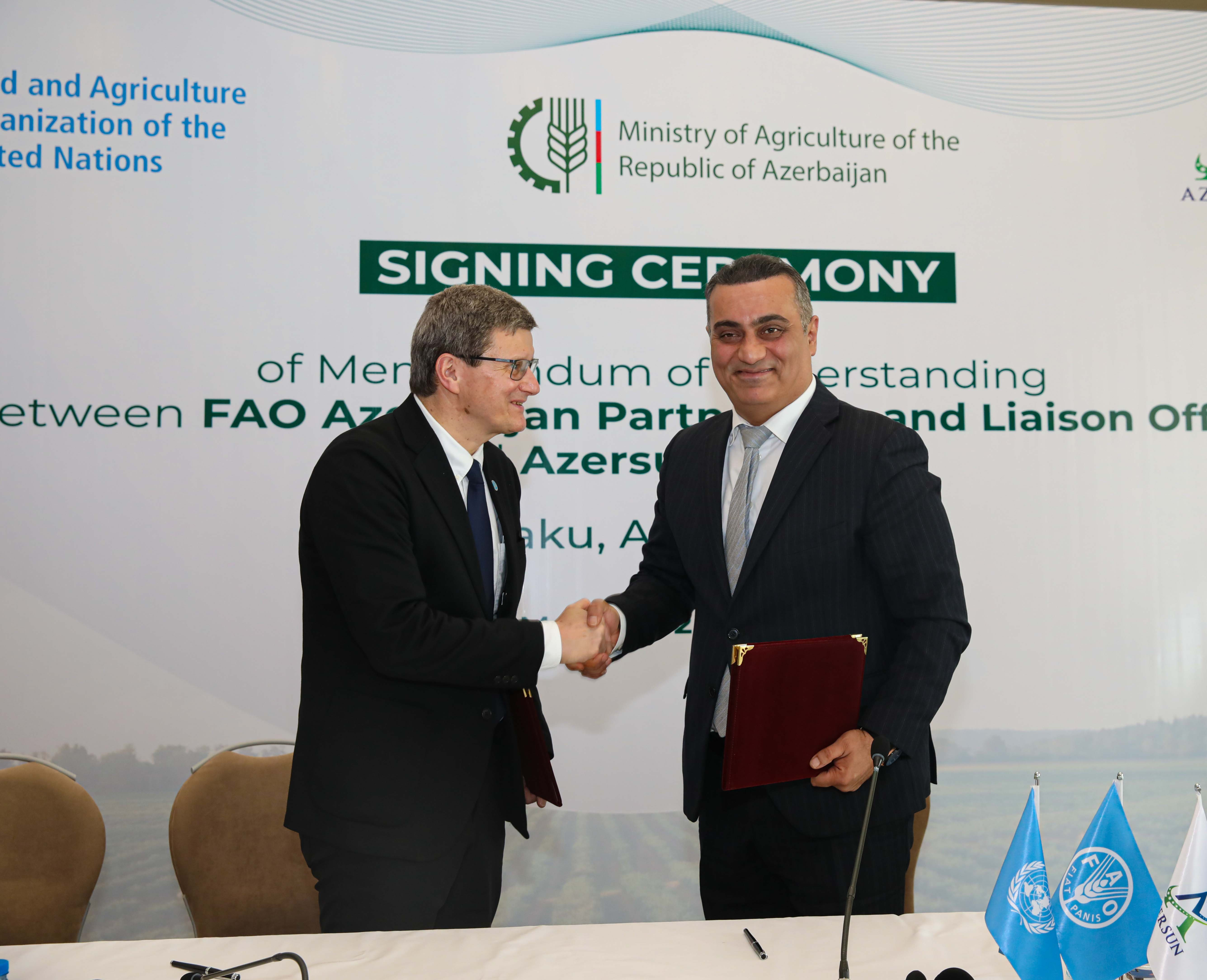 Birləşmiş Millətlər Təşkilatının (BMT) Ərzaq və Kənd Təsərrüfatı Təşkilatı (FAO) və “Azərsun Holdinq” arasında əməkdaşlıq memorandumu imzalanıb.