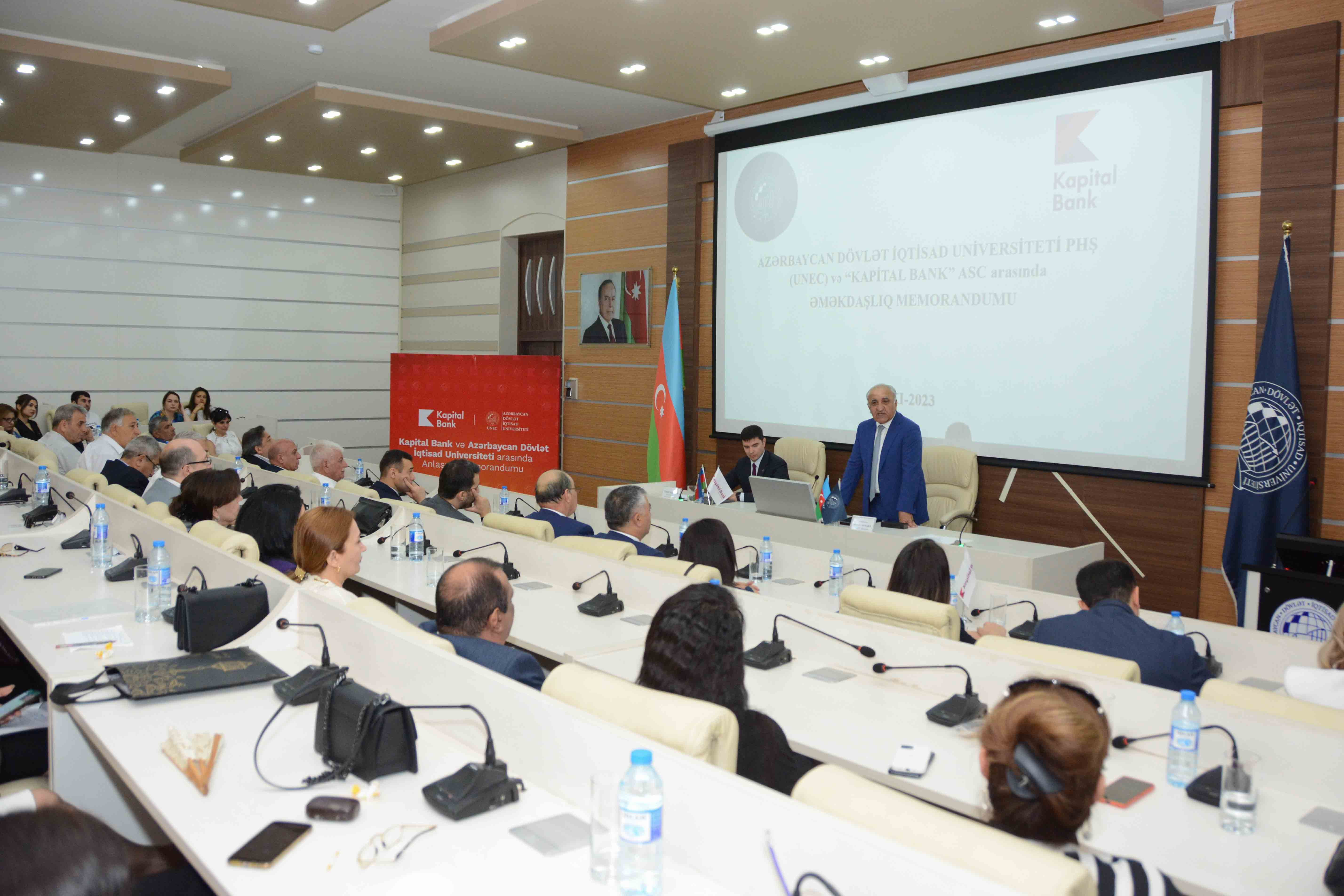 Tədbirdə Kapital Bank-ın İdarə Heyətinin sədri, Baş İcraçı direktor Fərid Hüseynov, UNEC rektoru professor Ədalət Muradov, həmçinin universitetin və bankın əməkdaşları iştirak ediblər. Kapital Bank ilə UNEC arasında əməkdaşlığın yeni istiqamətləri üzrə təkliflər səsləndirildikdən sonra tərəflər arasında memorandum imzalanıb.