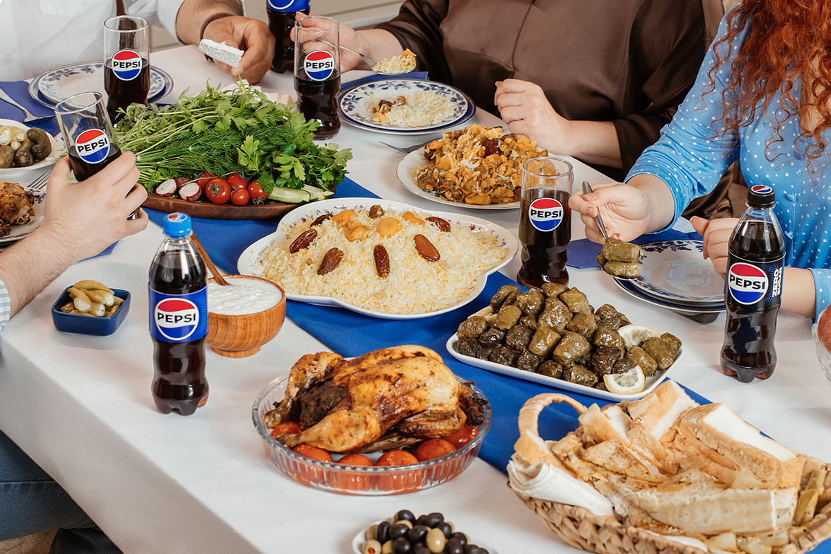 • Pepsi loqotipi müxtəlif kontekstlərdə harmonik şəkildə birləşir.
