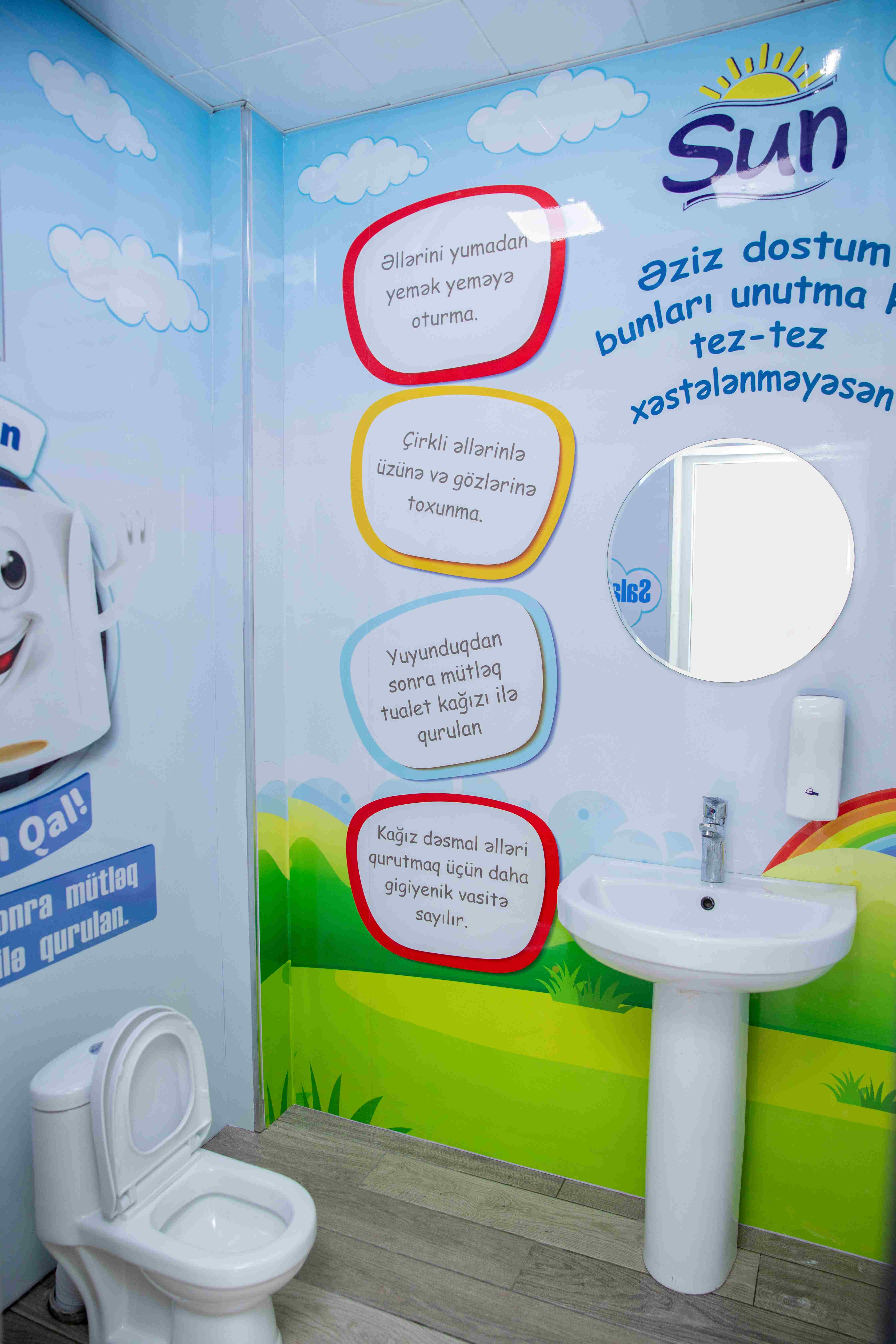 Bununla bərabər, “Sun” markası uşaqların gigiyena mövzusunda maariflənməsi üçün klinika daxilində tualet otağını xüsusi məlumat xarakterli rəsmlərlə bəzəyərək təmir edib.