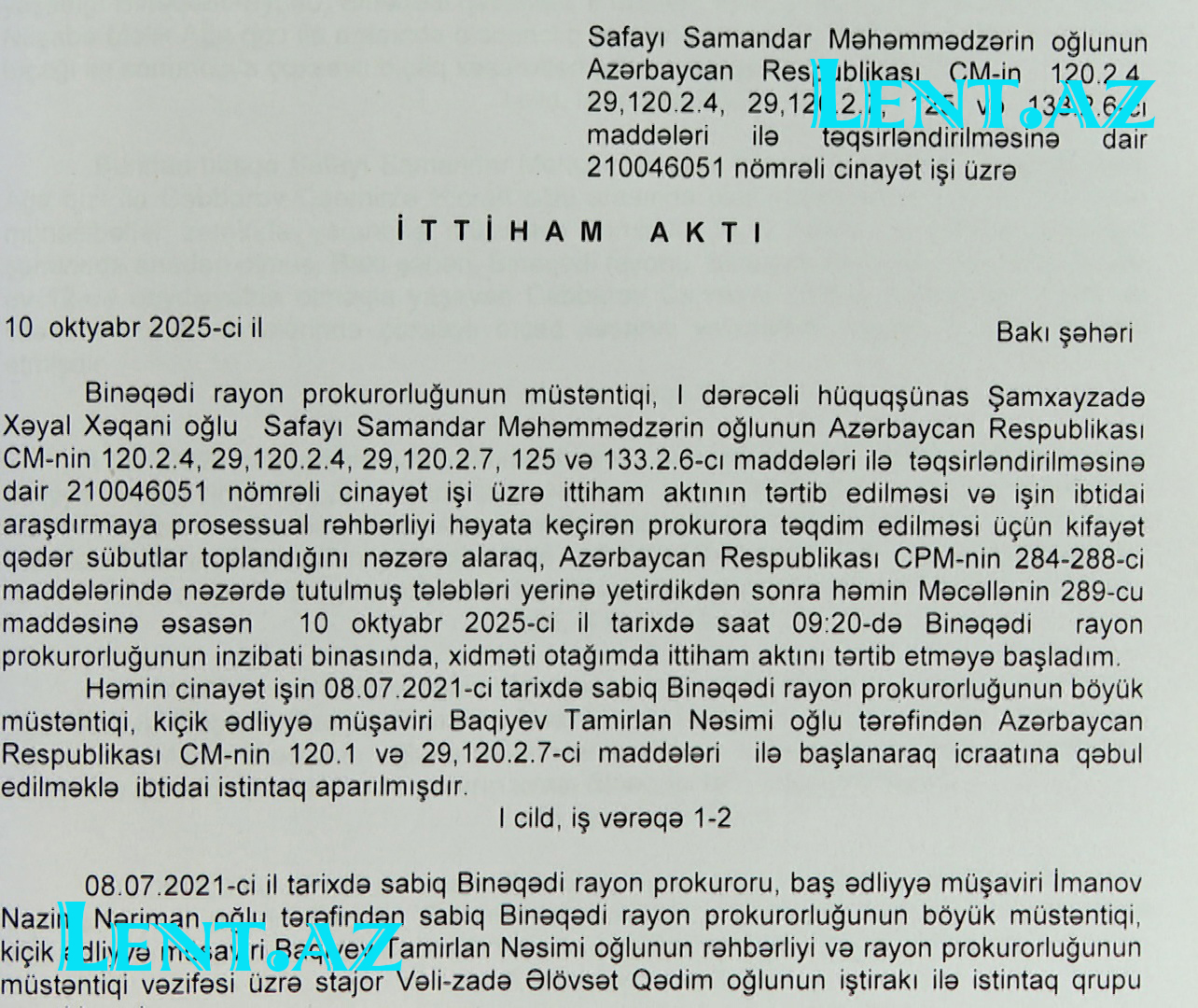 Lent.az cinayət hadisələrinin istintaq materiallarını əldə edib.