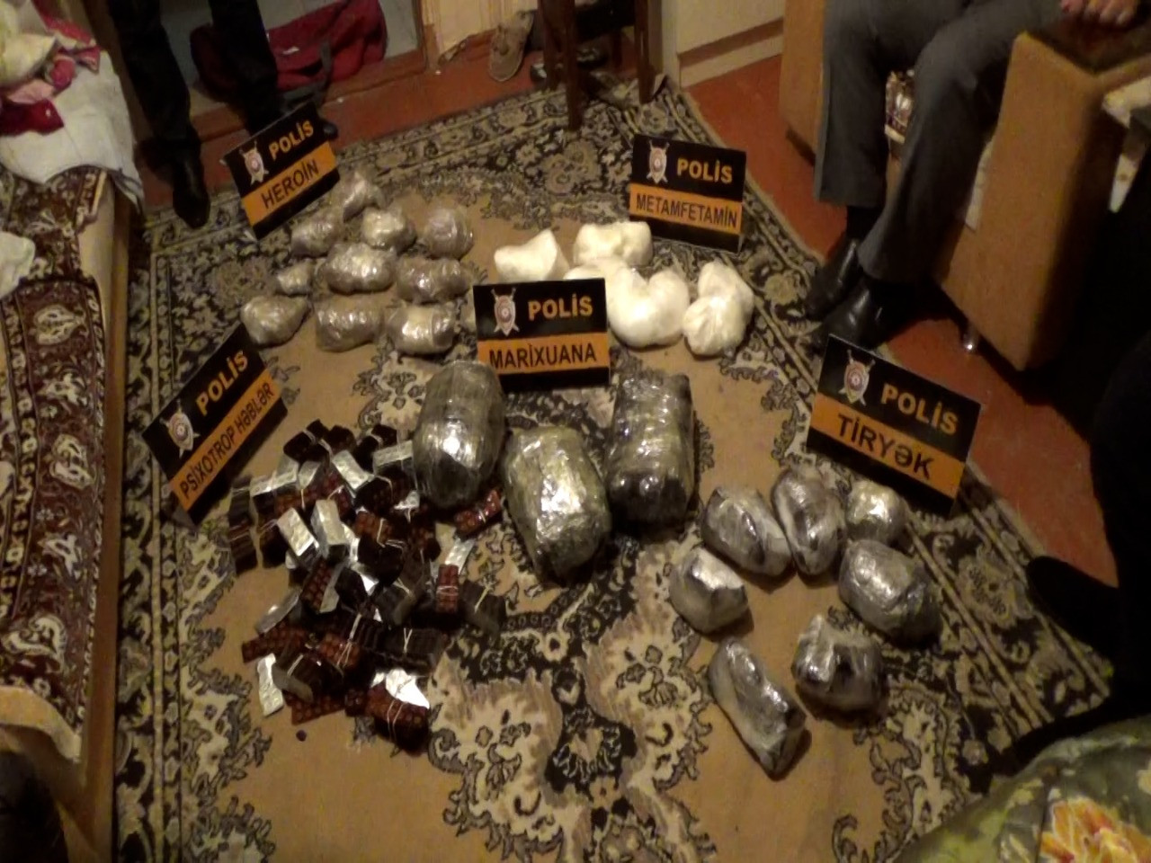 Daxil olmuş məlumat əsasında Xətai, Yasamal və Yardımlı rayonlarında keçirilən əməliyyatlar zamanı Ramin Mirzəyev, Məhəmməd Zərbəlizadə, Ülvü Bağırlı və Əmrah Süleymanlı tutulublar. Bu şəxslərdən, idarə etdikləri avtomobillərdən, eləcə də yaşadıqları evlərdən ümumilikdə 67 kiloqram yüksək təsiredici narkotik maddə, o cümlədən 33 kiloqram heroin, 12 kiloqram metamfetamin, 12 kiloqram tiryək, 10 kiloqram marixuana, elektron tərəzilər və narkotik vasitələrin satışından əldə etdikləri pul vəsaitləri aşkar edilib. Məhəmməd Zərbəlizadədən əlavə olaraq 1 ədəd tapança və patron darağı da aşkar olunaraq götürülüb.