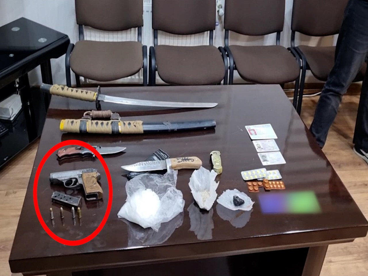 İdarə əməkdaşlarının keçirdikləri növbəti əməliyyatlar zamanı rayon ərazisində soyğunçuluq və quldurluq edən 8 nəfərdən ibarət 3 cinayətkar dəstə saxlanılaraq istintaqa təqdim ediliblər. Tutulan zaman onlardan birindən atəşə yararlı “Walter” markalı tapança və 4 ədəd parton da aşkar edilib.