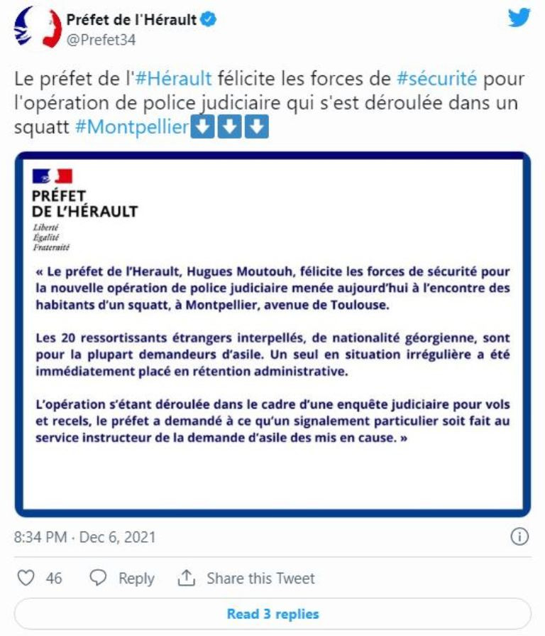 Fransa polisi Monpelye kommunasında qanunsuz məskunlaşan Gürcüstan vətəndaşlarına qarşı əməliyyat keçirib.