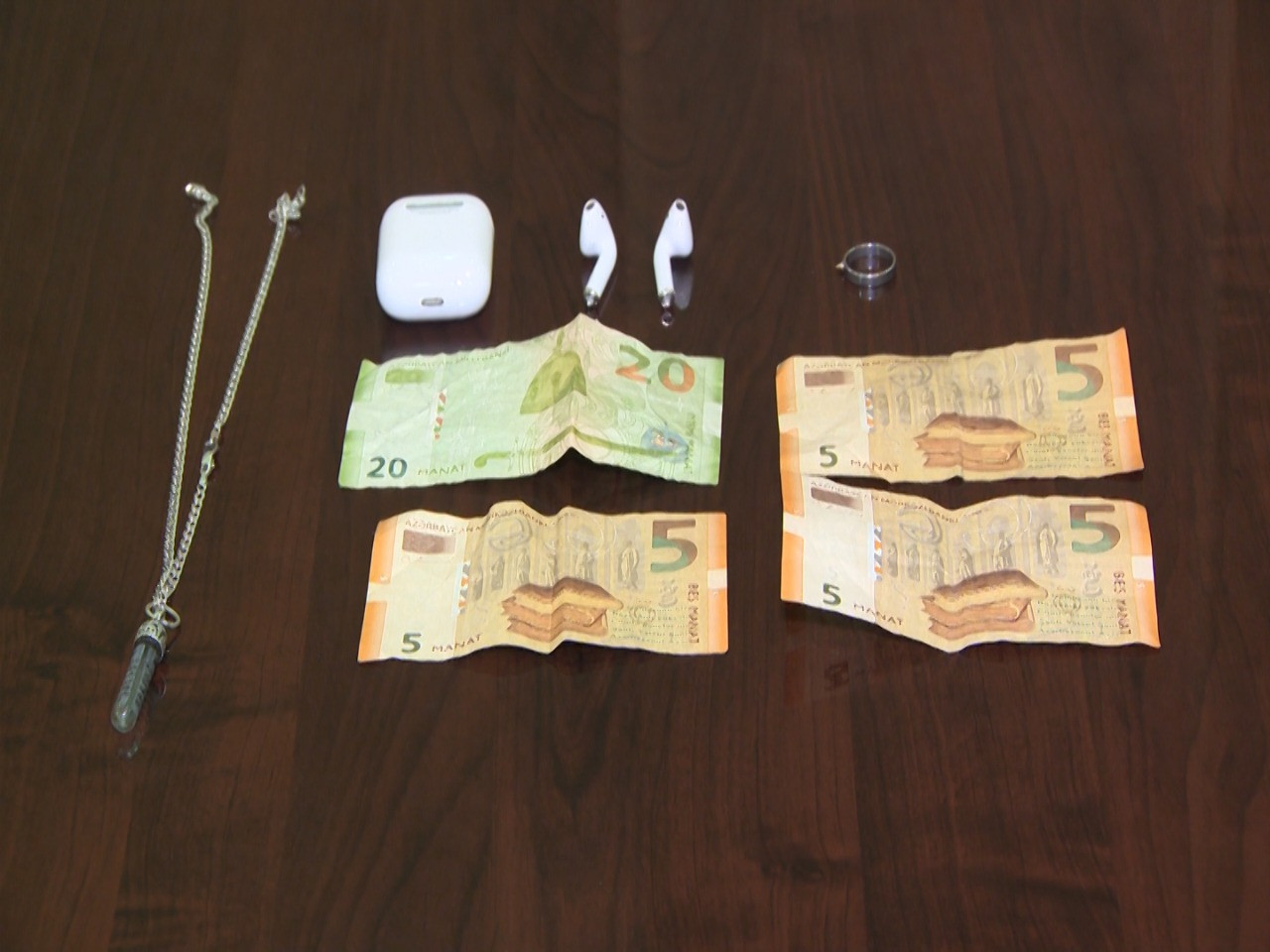 Hadisə zamanı həmin şəxs qadının üzərində olan 35 manatı, 1 ədəd boyunbağını və 1 ədəd üzüyü ələ keçirərək hadisə yerindən qaçıb. Abşeron rayon Polis İdarəsi Saray Polis Bölməsi əməkdaşlarının keçirdikləri təxirəsalınmaz əməliyyat-axtarış tədbiri nəticəsində hadisəni törətməkdə şübhəli bilinən Sumqayıt şəhər sakini Rahib Abuzərov saxlanılıb. O, izahatında əməlini etiraf edib və hadisə zamanı zərərçəkən qadından götürdüyü əşyaları polis əməkdaşlarına təhvil verib.