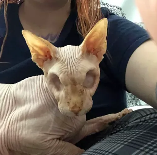 Sfenks pişiyi olan Jasper hər iki gözündən məhrumdur. Onun görüntüsü sizi ürəkdən sarsıdacaq.