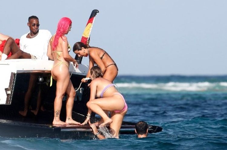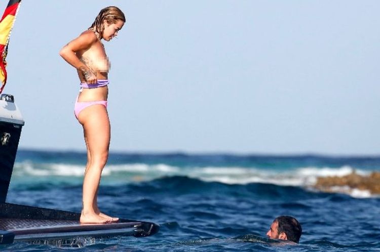 Dənizə də büstqaltersiz girən sənətçinin görüntülərini paparatsilər lentə almağı bacarıb.