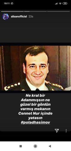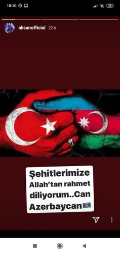 "Alişan" olaraq tanınan türkiyəli məşhur müğənni Serkan Burak Tektaş özünün "İnstagram" səhifəsində paylaşım edib. "Şəhidlərimizə Allahdan rəhmət diləyirəm. Can Azərbaycan" deyən ifaçı şəhid generalımız Polad Həşimovu da yad edib: