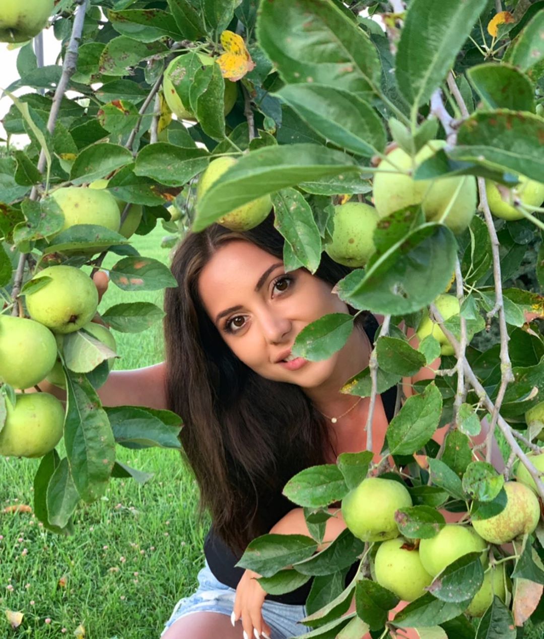 Lent.az-ın məlumatına görə, o meyvə ağaclarının içində maraqlı şəkillər çəkdirib.