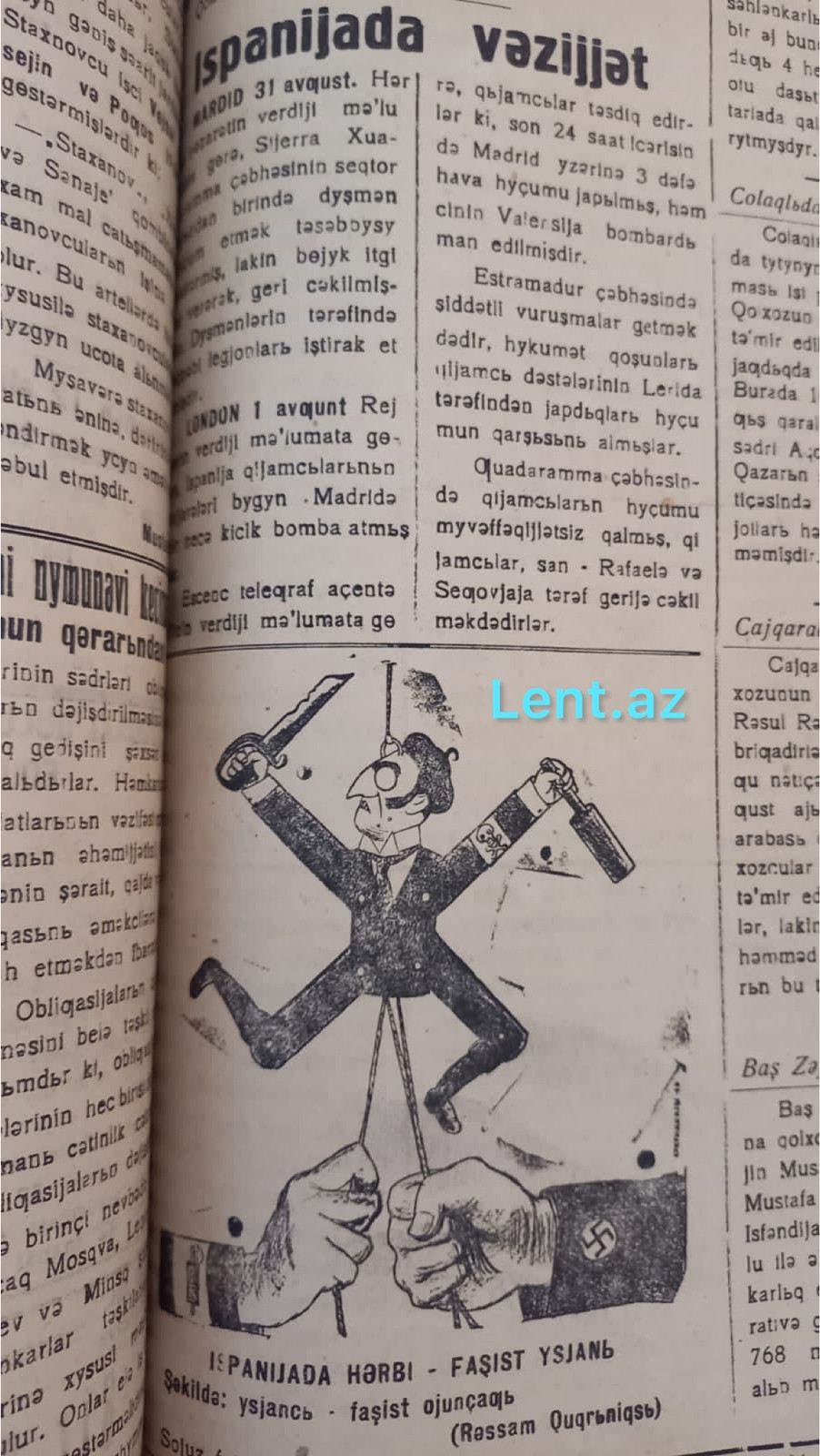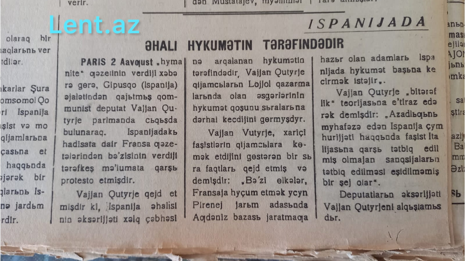 Lent.az-ın “Nuxa işçisi” qəzetinin 1936-cı ilə dair əldə etdiyi nömrələrində İspaniyadakı vəziyyətlə bağlı maraqlı məlumatlar yer alır.