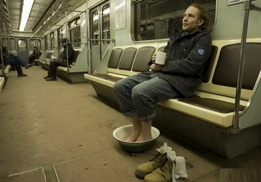 Çoxlarımız metroda qəribə hadisələrlə rastlaşmışıq. Bu dəfə təqdim edəcəyimiz fotolara baxdıqda, sözün əsl mənasında təəccüblənməmək olmurl: kimi ayağını suya qoyub, kimi stol açıb, yemək hazırlayır, kimi biton ilanını öpür... Hətta ayağını qırxana da rast gəlmək mümkündür.