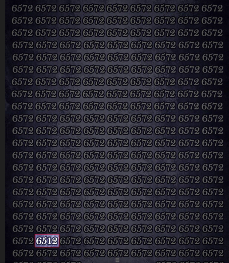 Bir neçə sətirdə eyni rəqəmlər yazılmış kollaja baxın - 6572. Onların arasında bir yerdə başqa bir rəqəm - 6512 gizlənir və onu tapmalısınız.