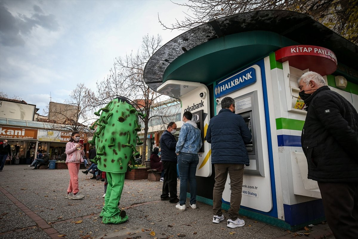 Bəzən kassada növbə gözləyən vətəndaşlar arasında olan "koronavirus", bəzən də bankda oturan yaşlıların yanına gedir, yaxud səssizcə yaxınlaşaraq qrup halında gəzən insanlara xəbərdarlıq edib.
