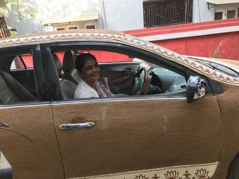 Eyni zamanda, qadın günəşin qızmar istisindən qorunmaq üçün maşının şöl hissələrinə inək peyini yaxıb.