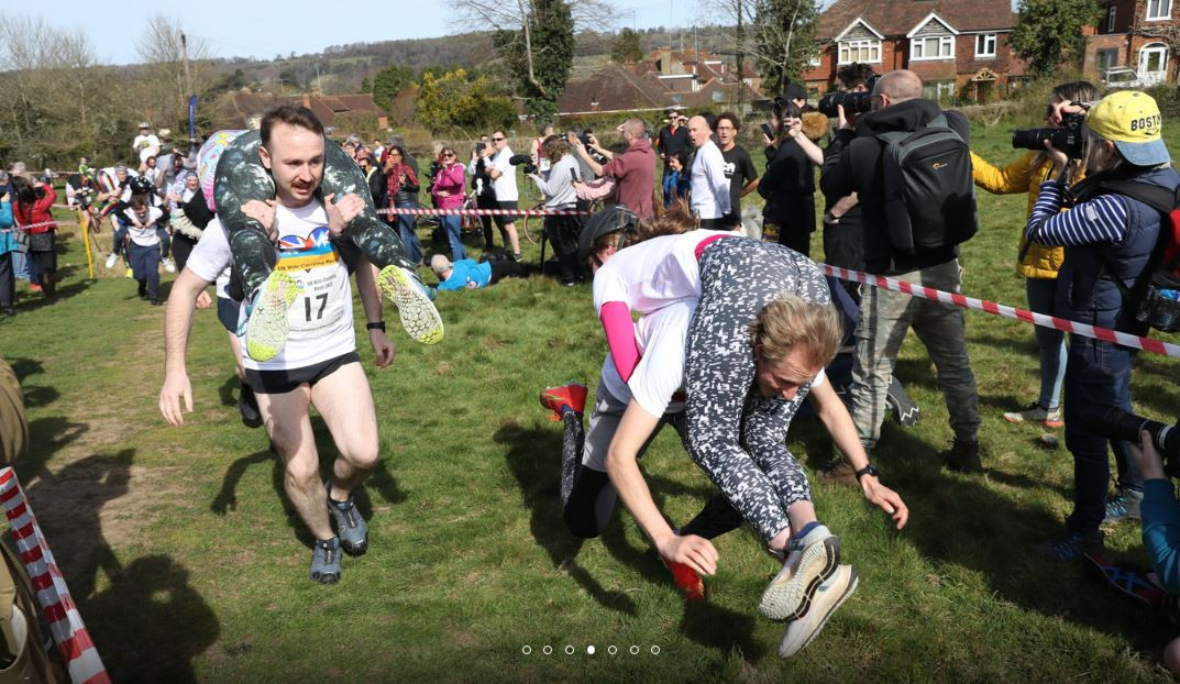 Britaniyada kişilər arvadlarını çiyinlərində daşımaq yarışında iştirak ediblər.