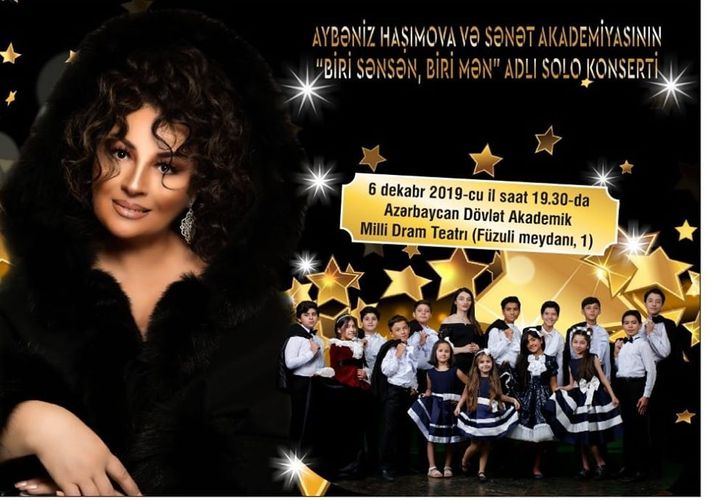 Özündən əvvəl səhnəyə “Bülbüllər”i çıxmışdı. “Heyratı” üstündə maraqlı kompozisiya təqdim etdilər. Səhnə maviyə bülənd olmuşdu, rəngbərəng gül-çiçəklə bəzədilmişdi, amma mavisi daha çox. Həvəsləri istedadlarına, istedadları həyəcanlarına qarışmış yeniyetmələr – “öhdəsindən gəldik” rahatlığı ilə səhnədən çəkiləndə aparıcı Azər Süleymanlı göründü, həmin qəlbə işləyən möcüzəli təbəssümü ilə. Bu konsertin aparıcısı məhz o olmalıdır düşünürsən, başqası bu ahəngin axarına düşüb belə axa bilməzdi. Onun təqdimatı ilə zalın tamaşaçılar üçün giriş qapısından gözlənilən, təyin olunduğu vaxtdan bir saat da gec başladığından az qala, həsrətini çəkdiyimiz solist göründü. Aybəniz Haşımova Milli Dram Teatrının səhnəsində yetirmələri ilə birgə “Biri sənsən, biri mən” adlı hesabatını verirdi.