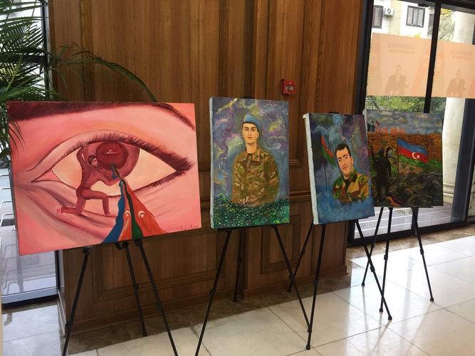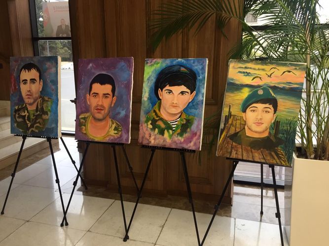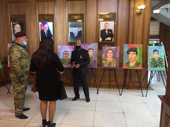 Lent.az xəbər verir ki, tədbirdə Azərbaycan Rəssamlar İttifaqının üzvü olan rəssamın Qarabağ müharibələrində şəhid olan hərbçilərin portret əsərləri təqdim edilib.
