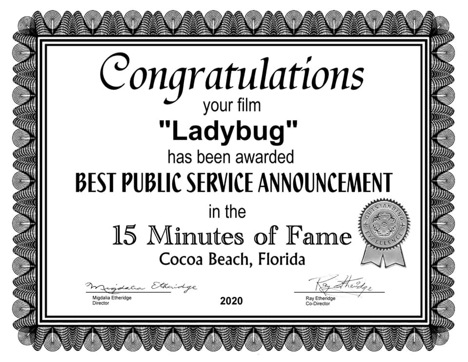 Diasporla İş üzrə Dövlət Komitəsindən Lent.az-a verilən məlumata görə, həmvətənimizin rejissoru olduğu "Ladybug" ("Uğur böcəyi") qısametrajlı filmi Florida ştatının Koko Biç (Cocoa Beach) şəhərində keçirilən "15 Minutes of Frame" film festivalinda “Ən yaxşı sosial film” nominasiyası üzrə qalib olub. Autizm sindromlu uşaqlara həsr edilən filmdə Azərbaycanın görkəmli sənətkarı Rəşid Behbudovun ifasinda “Laçın” mahnısı səsləndirilib.