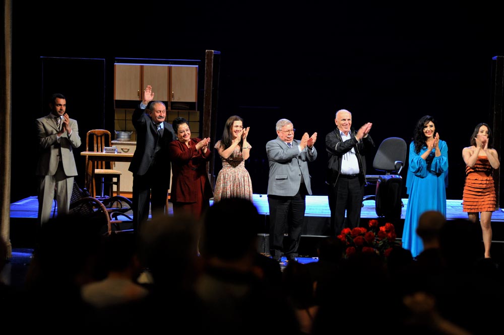 Qeyd edək ki, tamaşada rolları xalq artistləri Ramiz Novruz, Əjdər Həmidov, Sabir Məmmədov, əməkdar artistlər Məsmə Aslanqızı, Hicran Nəsirova, Almaz Amanova, aktyorlar Rada Nəsibova, Elnar Qarayev və Fəridə Əliyeva ifa edirlər.