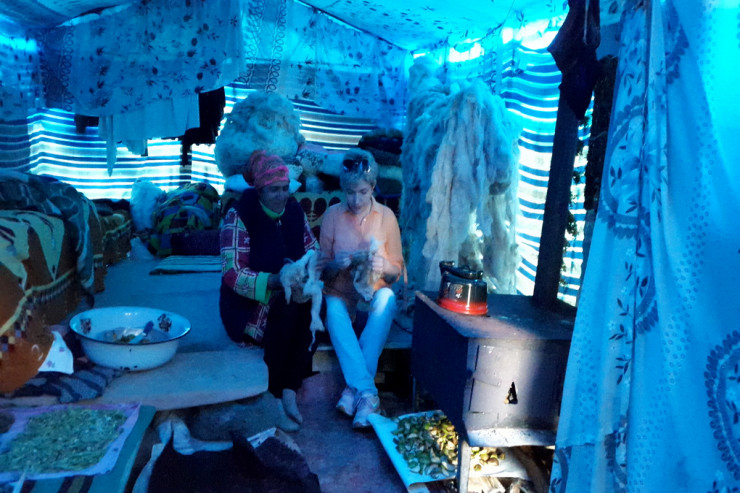 Bir az aralıdakı alaçığa yaxınlaşıram. Əslində bura təhlükəli ərazi sayıldığından ətrafda heç bir alaçığa rast gəlmək mümkün deyil. Qonşu çadırlar xeyli aralıdadır. Çadırın qarşısında iki qadın əyləşib...