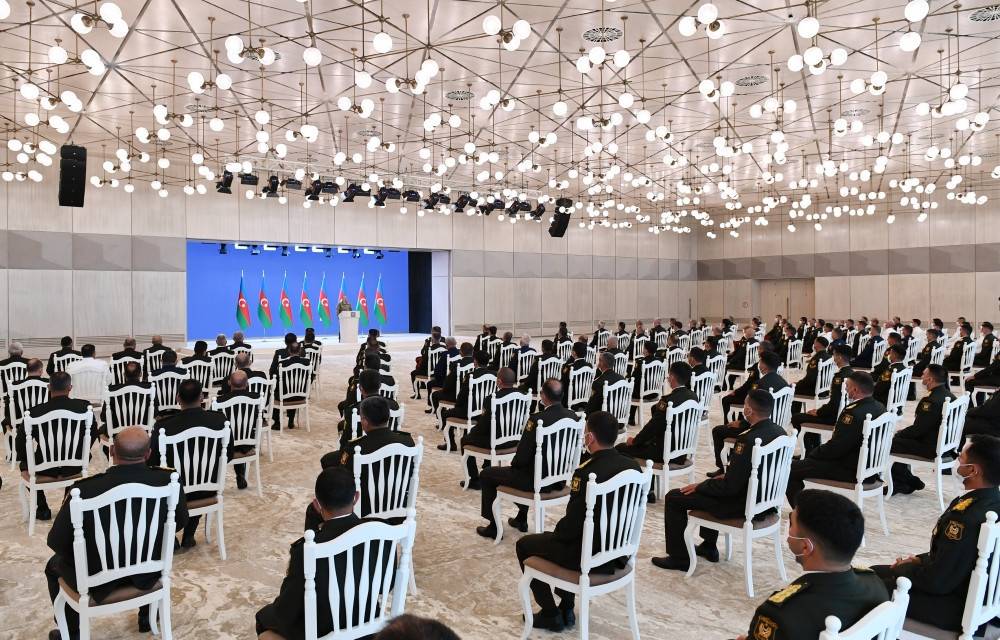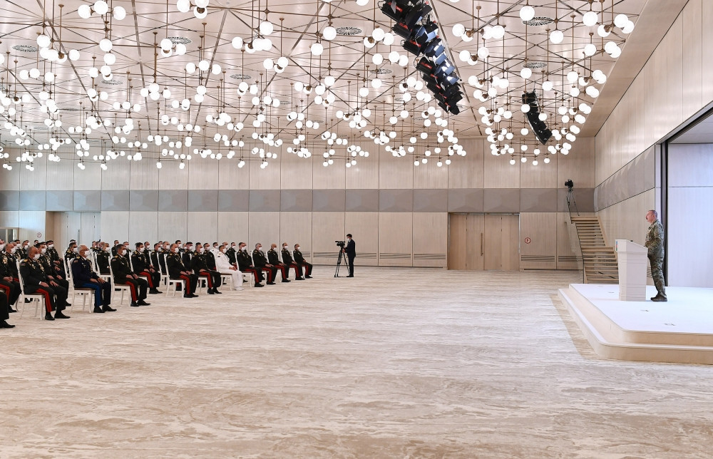 Lent.az-ın xəbərinə görə, Silahlı Qüvvələrin Müzəffər Ali Baş Komandanı görüşdə nitq söyləyib.