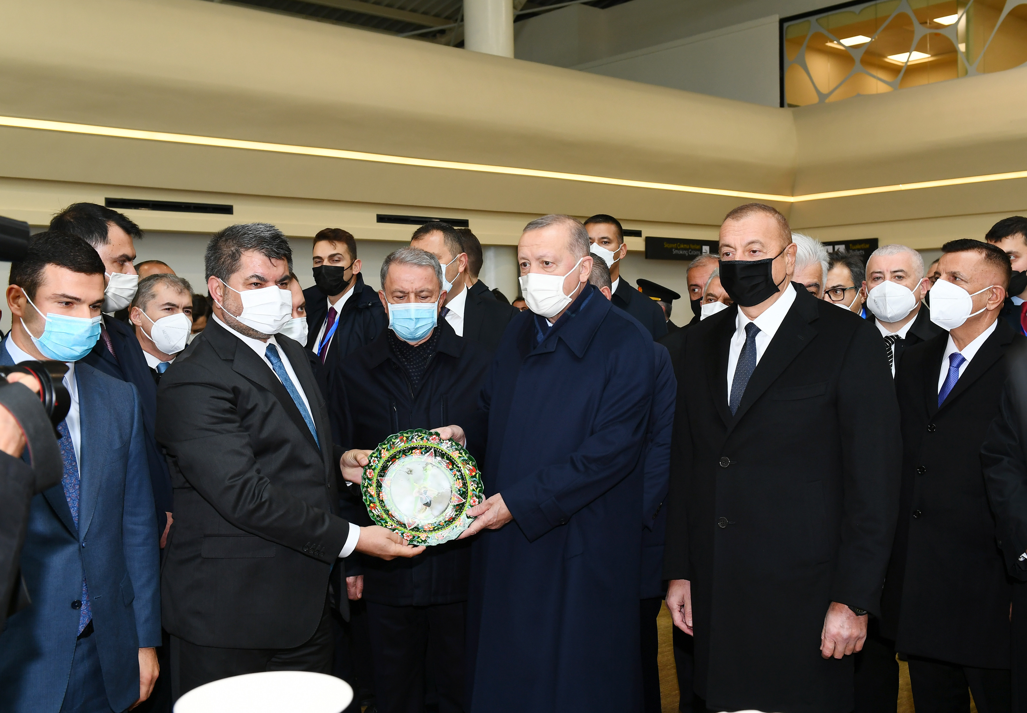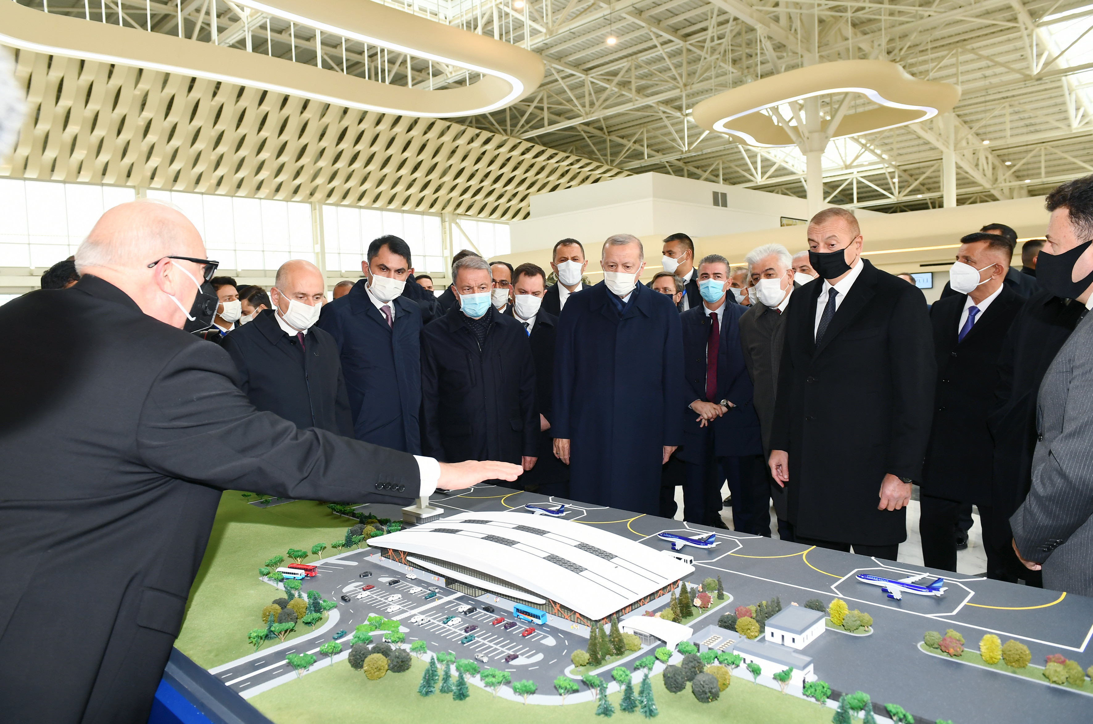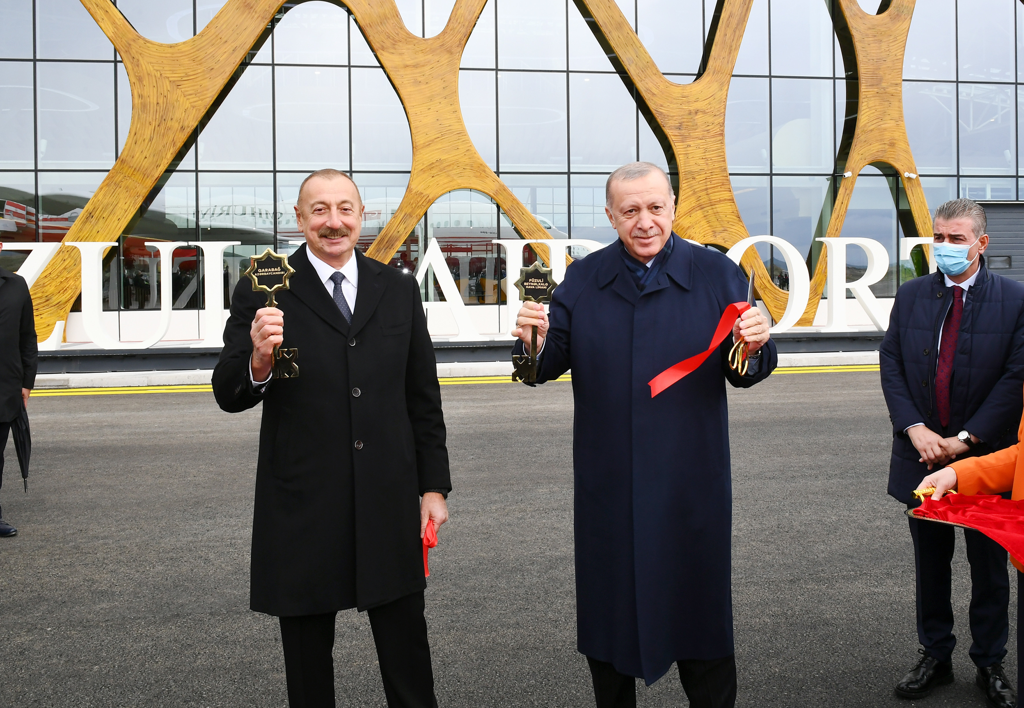 Füzuli Beynəlxalq Hava Limanının rəmzi açarları prezidentlərə təqdim edildi.