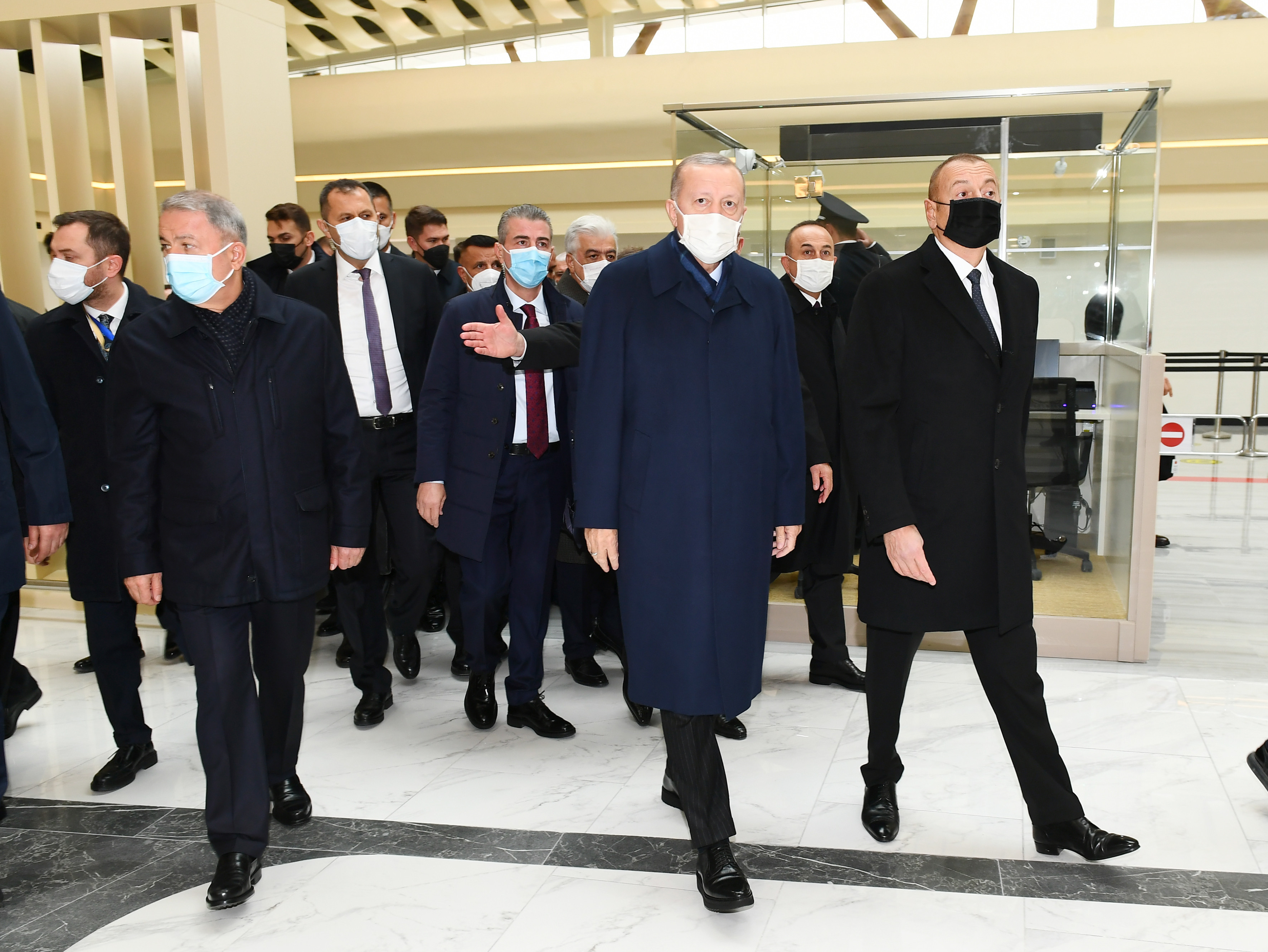 Dövlət başçıları hava limanında yaradılan şəraitlə tanış oldular.