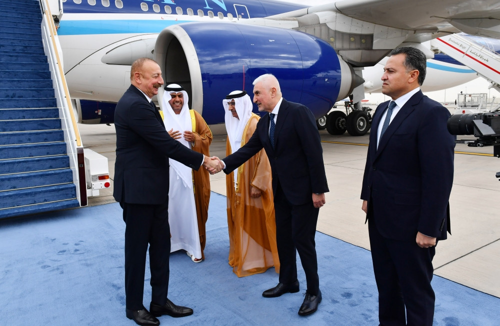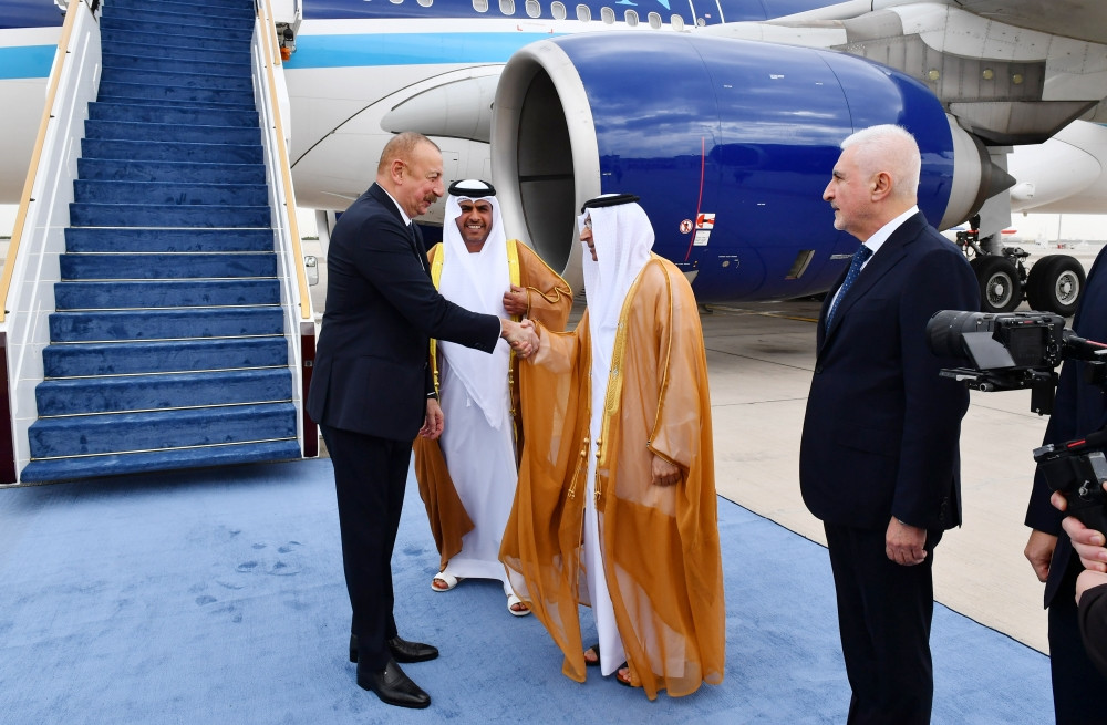 Prezident İlham Əliyevi Birləşmiş Ərəb Əmirliklərinin ədliyyə naziri Abdulla bin Avad Əl-Nueymi və digər rəsmi şəxslər qarşılayıblar.