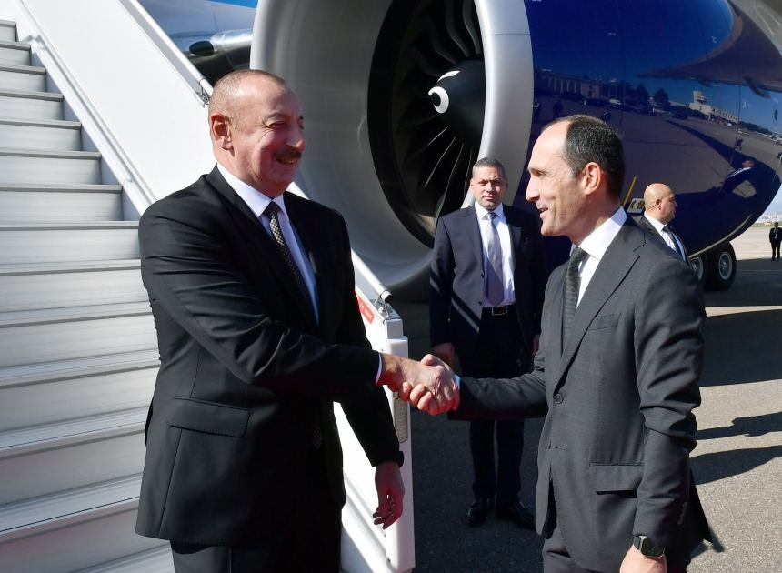 Azərbaycan Prezidentini Gürcüstanın Baş nazirinin müavini, iqtisadiyyat və davamlı inkişaf naziri Levan Davitaşvili və digər rəsmi şəxslər qarşıladılar.