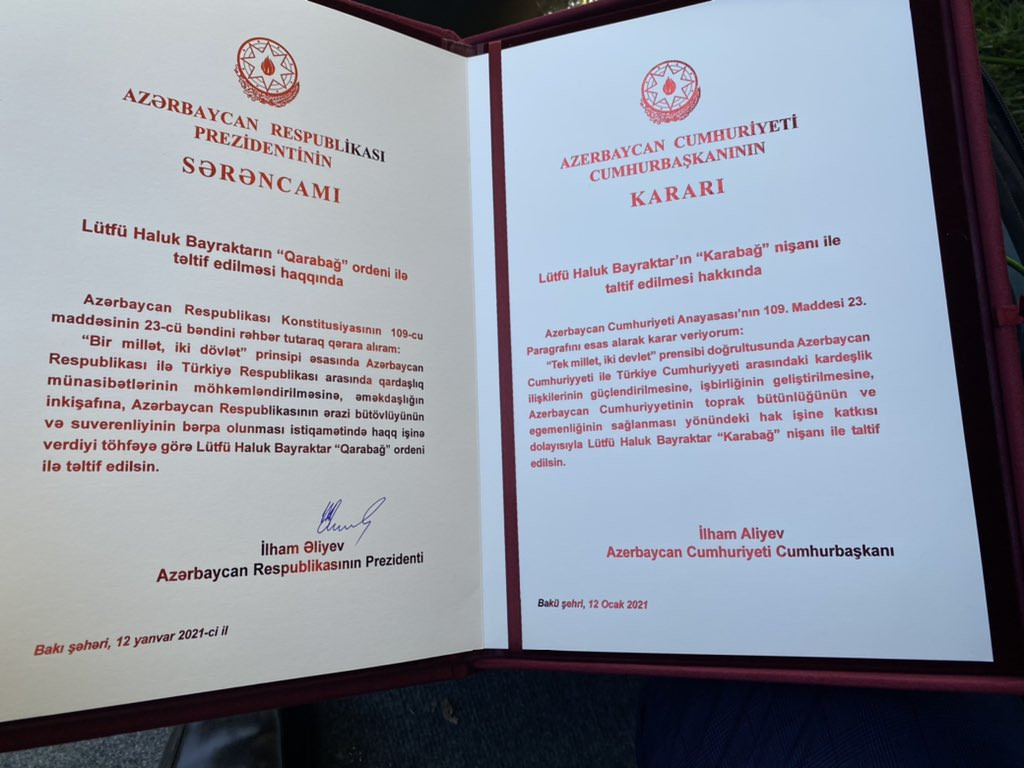 “Az öncə qardaşım İlham Əliyev “Baykar” İdarə Heyətindən Haluk Bayraktarı “Qarabağ” ordeni ilə təltif etdi”.