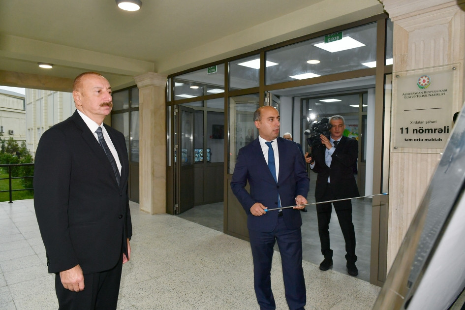 Azərbaycan Prezidenti İlham Əliyev sentyabrın 12-də iki min şagird yerlik Xırdalan şəhər 11 nömrəli tam orta məktəbin yeni binasının açılışında iştirak edib.
