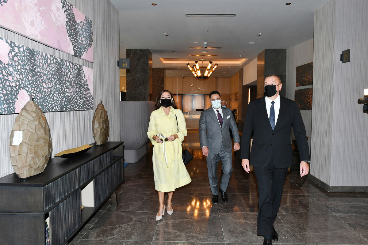 Dövlət başçısı və birinci xanım oteldə yaradılan şəraitlə tanış olublar.